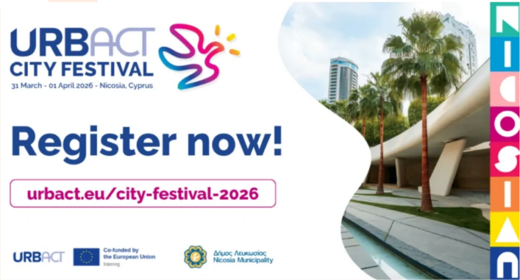 De editie van 2026 van het URBACT City Festival vindt plaats in Nicosia, Cyprus, van 31 maart tot 1 april 2026. Het festival brengt 500 stadsmakers uit heel Europa samen om inspiratie op te doen met de 273 lokale acties van URBACT-steden, zich te verdiepen in de belangrijkste stedelijke thema’s en te netwerken voor de nieuwe URBACT-oproep voor netwerken.
